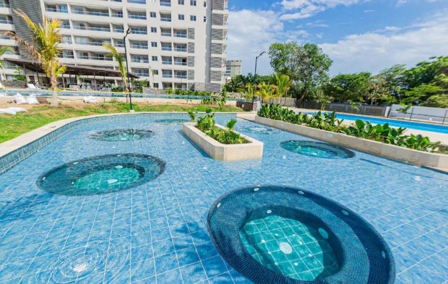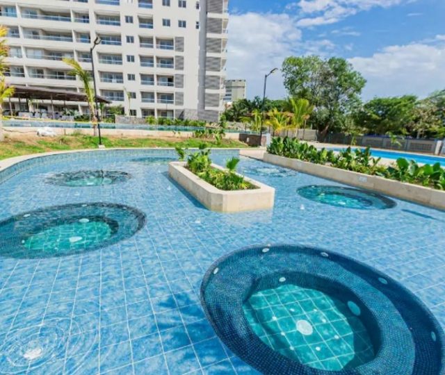 – Zonas comunes: playa privada, ascensor, piscina, restaurante, parqueaderos.